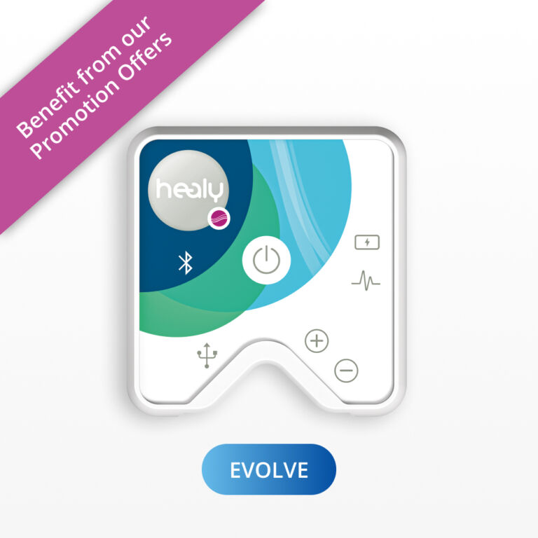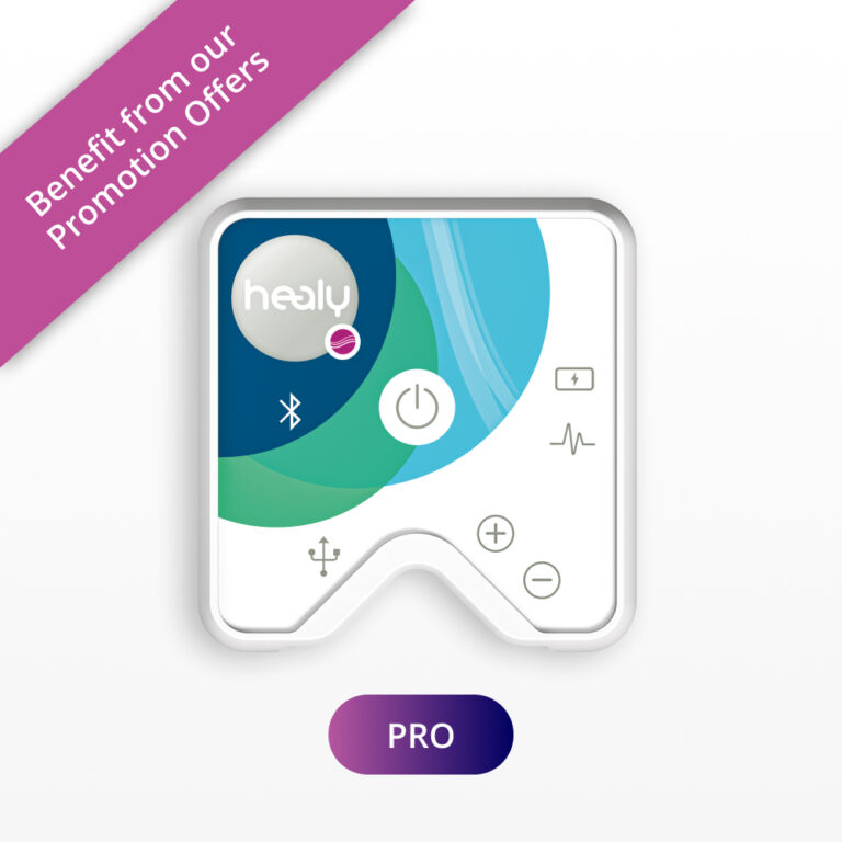 Nos encanta la sencillez de este dispositivo. Todos los programas son accesibles desde la APP descargada en su iPhone o Android, conectados al dispositivo Healy a través de Bluetooth. Como el dispositivo es portátil, puede desplazarse y continuar con su actividad, sin dejar de recibir el tratamiento en ningún momento.
